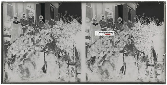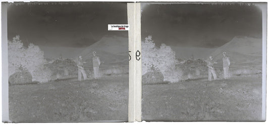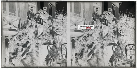 Villa, maison, famille, stéréoscopie, photo plaque verre, négatif 9x18 cm