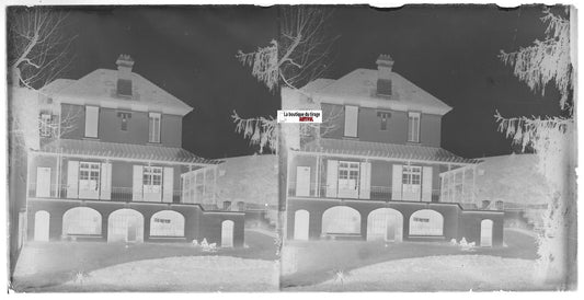Villa, France, Plaque verre photo stéréoscopique, positif noir & blanc 6x13 cm