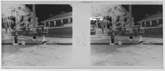 Vineuil-Saint-Firmin, Plaque verre stéréo, négatif noir & blanc 4,5x10,7 cm