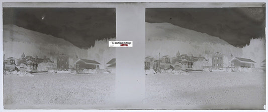 Village, Plaque verre photo stéréoscopique, négatif noir & blanc 4,5x10,7 cm