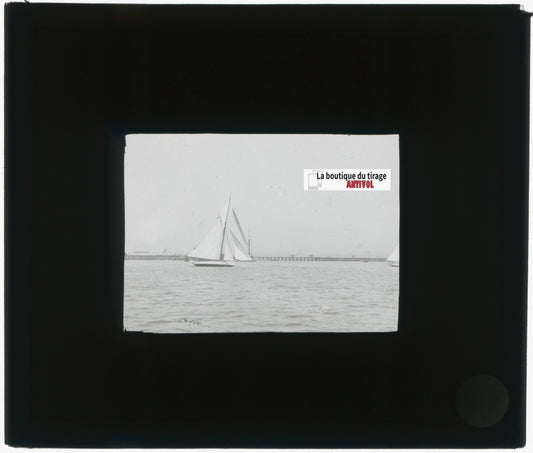 Yokohama, Japon, bateaux, photo plaque verre, noir & blanc, positif 8,5x10 cm