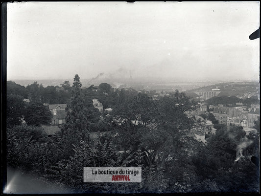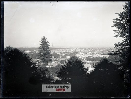Vue sur Paris depuis Meudon, plaque verre, photo ancienne, négatif 9x12 cm