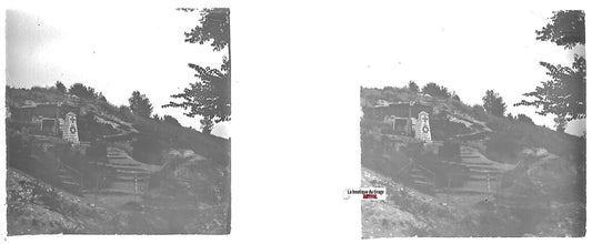 WW1, guerre, Somme, Plaque verre stéréo positif ancien noir & blanc 4,5x10,7 cm