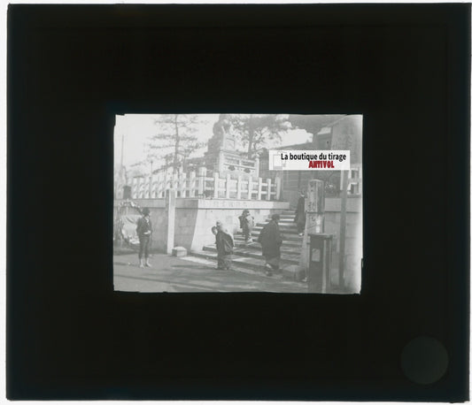 Yokohama, Japon, temple, photo plaque verre, noir & blanc, positif 8,5x10 cm