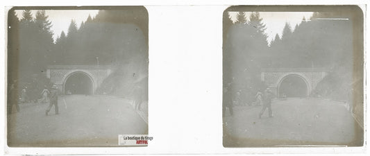 Tunnel de Bussang, Vosges, plaque verre stéréo, photo ancienne 4,5x10,7 cm
