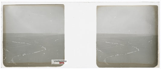 Vallée du Lys, Crabioules, plaque verre, photo ancienne stéréo, sépia 6x13 cm
