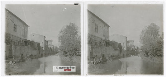 Vézelise village, guerre WW1, plaque verre photo ancienne stéréo 6x13 cm