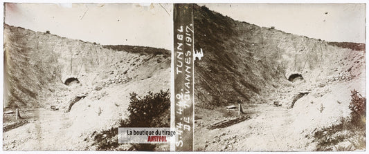Verdun, tunnel de Tavannes, guerre WW1, plaque verre stéréo, photo 4,5x10,7 cm