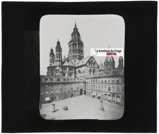 Cathédrale de Mayence, Allemagne, photo ancienne plaque verre, positif 8,5x10 cm