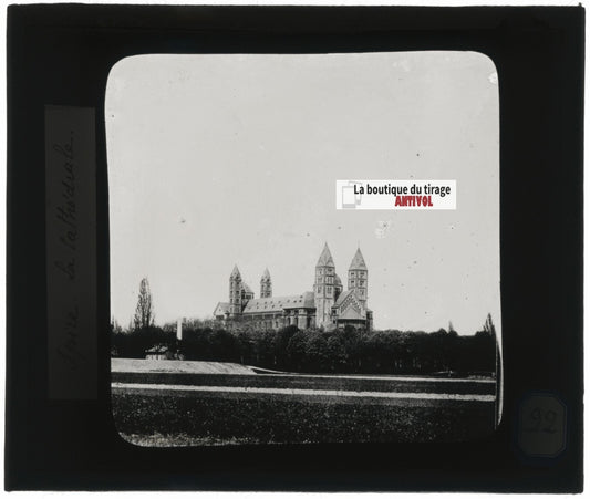 Cathédrale de Spire, Allemagne, photo ancienne plaque verre, positif 8,5x10 cm