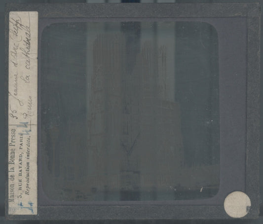 Cathédrale de Reims, photo plaque verre, noir & blanc, positif 8,5x10 cm