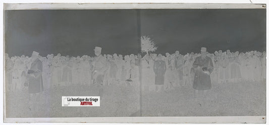 Cérémonie militaire France, plaque verre, photo ancienne, négatif N&B 6x13 cm