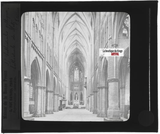 Cathédrale Saint-Etienne de Metz, photo plaque verre, positif 8,5x10 cm