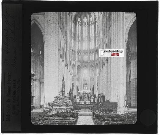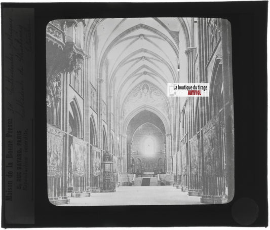Cathédrale Saint Julien-Le Mans, photo plaque de verre, positif 8,5x10 cm