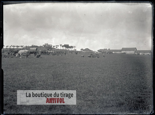 Cavalerie et fantassins, WW1, plaque verre, photo ancienne, négatif 9x12 cm