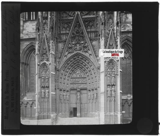 Cathédrale Notre-Dame de Rouen, photo ancienne plaque verre, positif 8,5x10 cm
