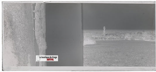 Champs, paysage France, plaque verre, photo ancienne, négatif N&B 6x13 cm