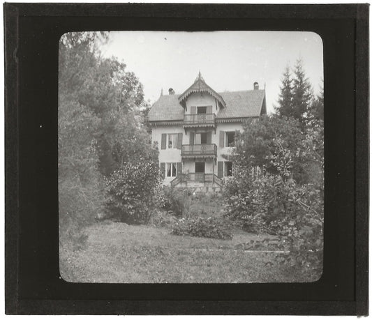 Châlet Bretagne, famille, photo ancienne plaque de verre, positif 8,5x10 cm