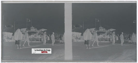 Algérie, mer, plaque verre, photo stéréoscopie, négatif noir & blanc 6x13 cm