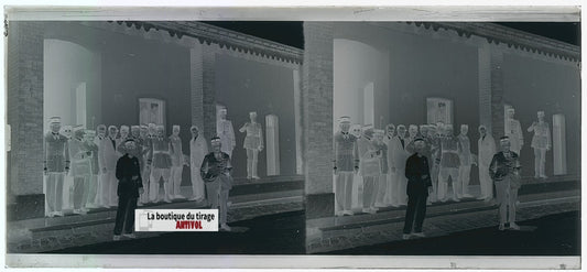 Algérie, officiers coloniaux, plaque verre, photo stéréo, négatif N&B 6x13 cm
