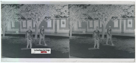 Algérie, Officiers militaires, plaque verre, photo stéréo, négatif N&B 6x13 cm