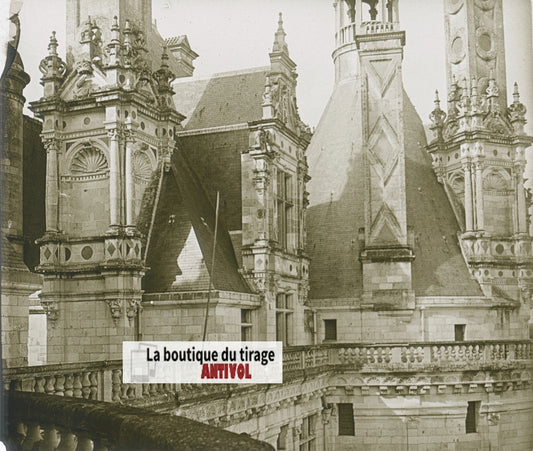 Château de Chambord, photo ancienne plaque de verre, positif 8,5x10 cm