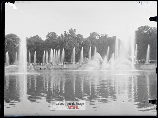 Château de Versailles, fontaines, plaque verre, photo ancienne, négatif 9x12 cm