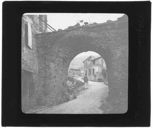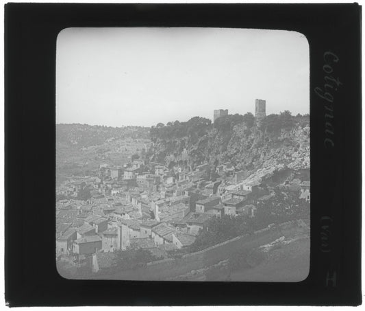 Cotignac, village Var, photo ancienne plaque de verre, positif 8,5x10 cm