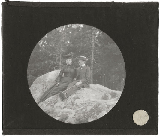 Couple, nature, personnages, photo ancienne plaque de verre, positif 8,5x10 cm