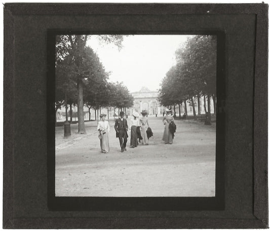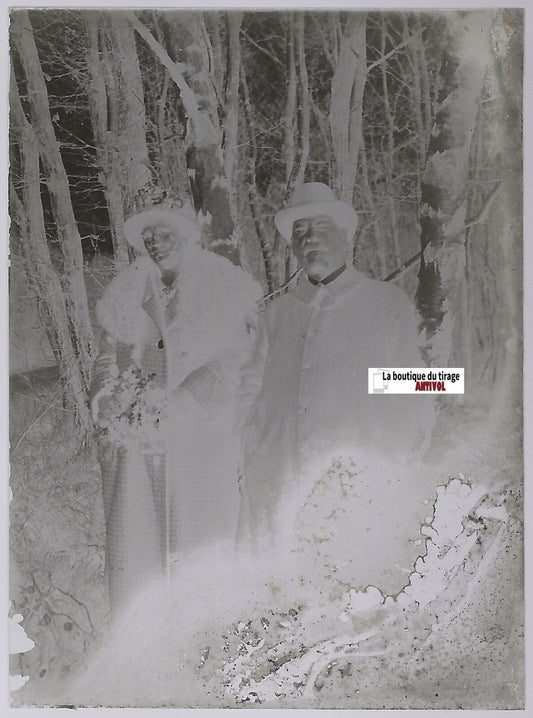 Couple, promenade, Plaque verre photo ancienne, négatif noir & blanc 6x9 cm