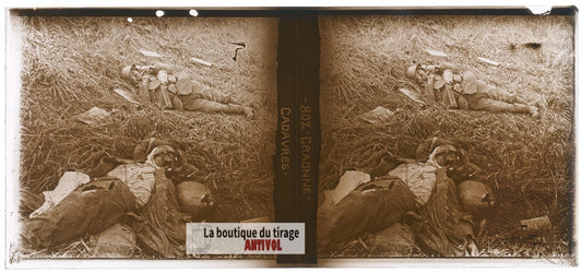 Craonne, cadavres, guerre WW1, plaque verre photo ancienne stéréo 6x13 cm