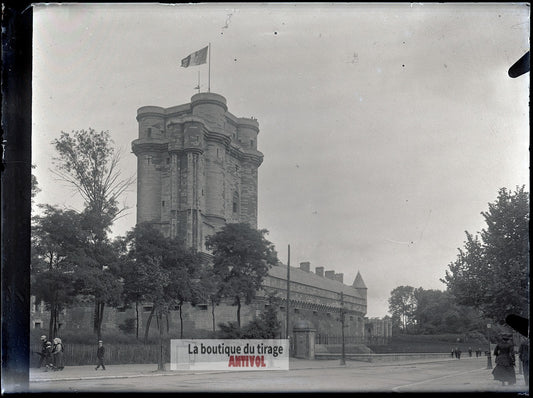 Donjon de Vincennes, France, plaque verre, photo ancienne, négatif 9x12 cm