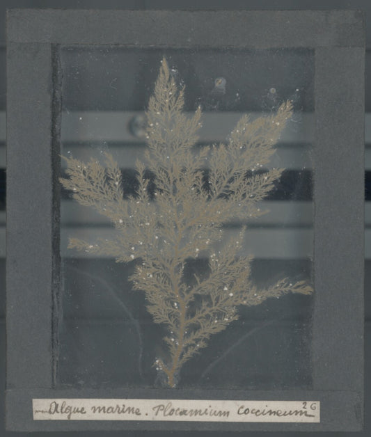 Echantillon algue marine, mer, nature, sous plaque de verre, 8,5x10 cm
