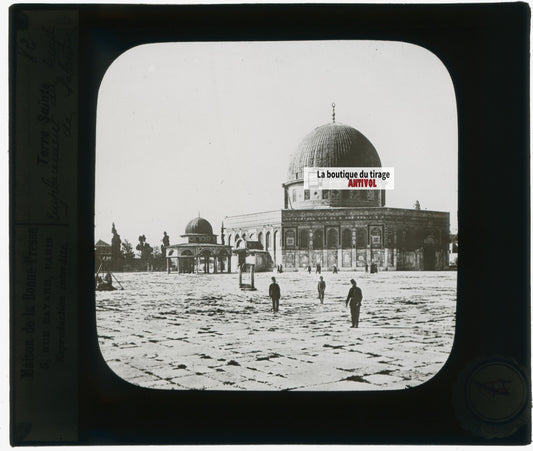 Dôme du Rocher, Jerusalem, photo plaque verre, noir & blanc, positif 8,5x10 cm