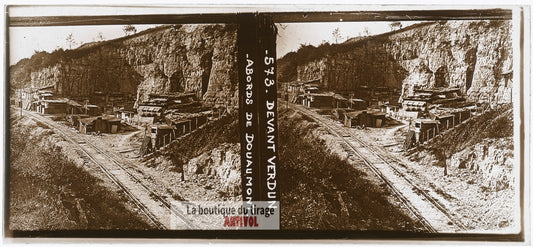 Douaumont, Verdun, guerre WW1, plaque verre photo ancienne stéréo 6x13 cm