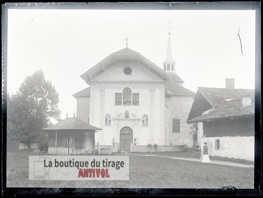 Eglise Saint-Nicolas de Véroce, plaque verre, photo ancienne, négatif 9x12 cm