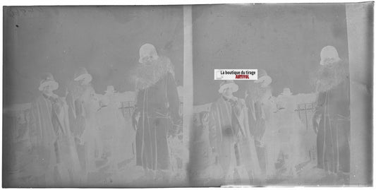 Famille, personnages, stéréoscopie plaque ancienne verre, négatif 9x18 cm