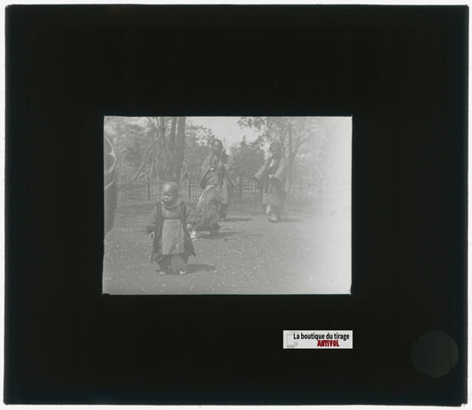 Asie, Japon, enfants, photo plaque verre, noir & blanc, positif 8,5x10 cm