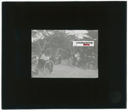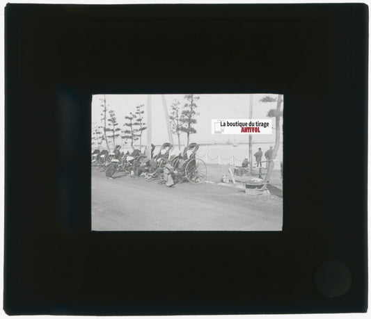Asie, Japon, Rickshaws, photo plaque verre, noir & blanc, positif 8,5x10 cm