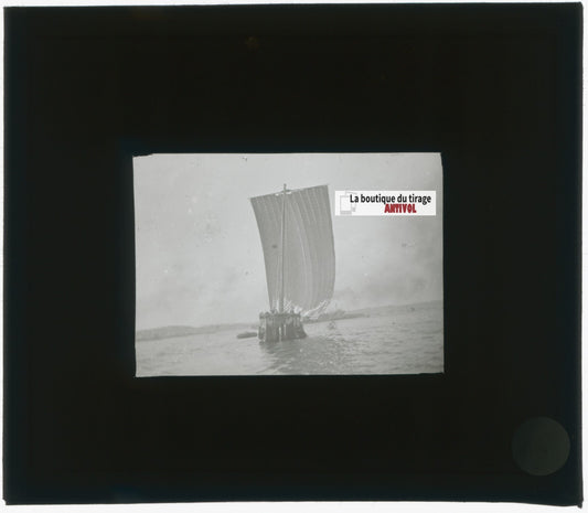 Asie, mer, Japon, bateau, photo plaque verre, noir & blanc, positif 8,5x10 cm