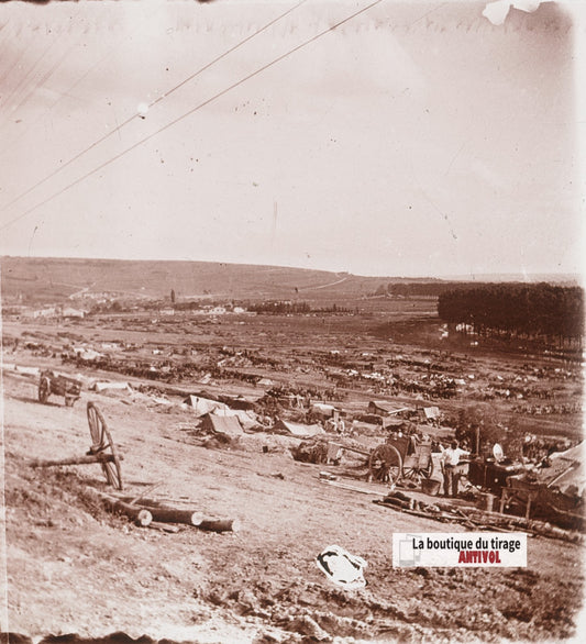Argonne, camp militaire WW1, plaque verre stéréo, photo ancienne 4,5x10,7 cm