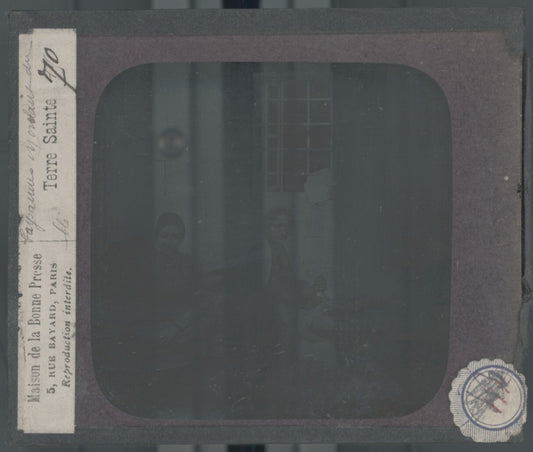 Fête des Tabernacles, Jésus, dessin, plaque verre ancienne, couleur 8,5x10 cm