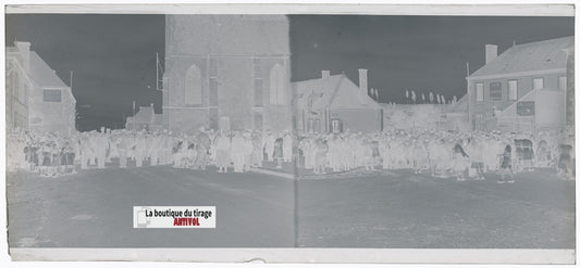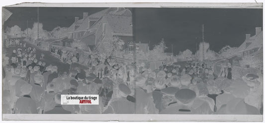 Fête de village, France, plaque verre, photo ancienne, négatif N&B 6x13 cm