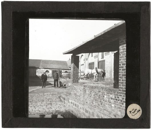 Ferme à Cerny-lès-Bucy, photo ancienne plaque de verre, positif 8,5x10 cm