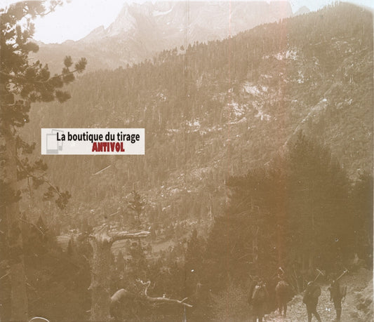 Gorges du Gave, Pyrénées, plaque verre, photo ancienne stéréo, sépia 6x13 cm