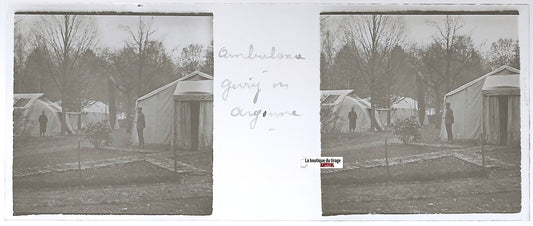 Givry-en-Argonne, soldats, Plaque verre stéréo, positif noir & blanc 4,5x10,7 cm