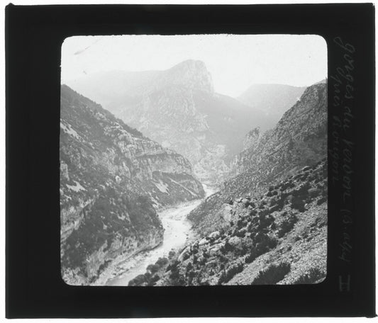 Gorges du Verdon, Rougon, photo ancienne, plaque de verre, positif 8,5x10 cm
