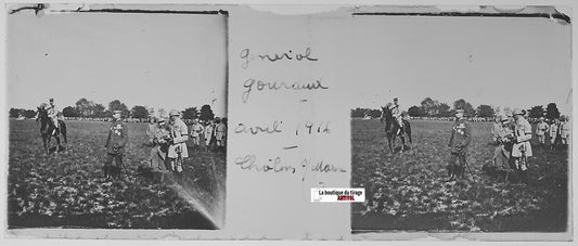Gouraud général, Plaque verre stéréo positif ancien noir & blanc 4,5x10,7 cm