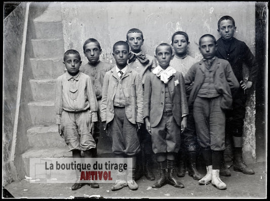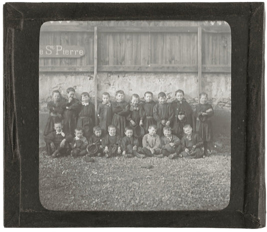 Groupe enfants Saint-Pierre, photo ancienne plaque de verre, positif 8,5x10 cm
