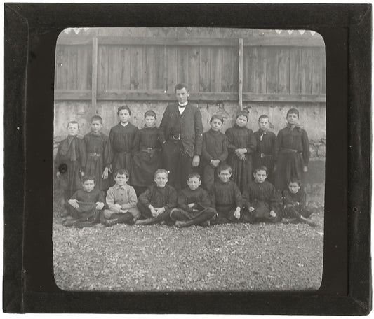 Groupe d’écoliers, garçons, plaque verre, photo ancienne, négatif 9x12 cm